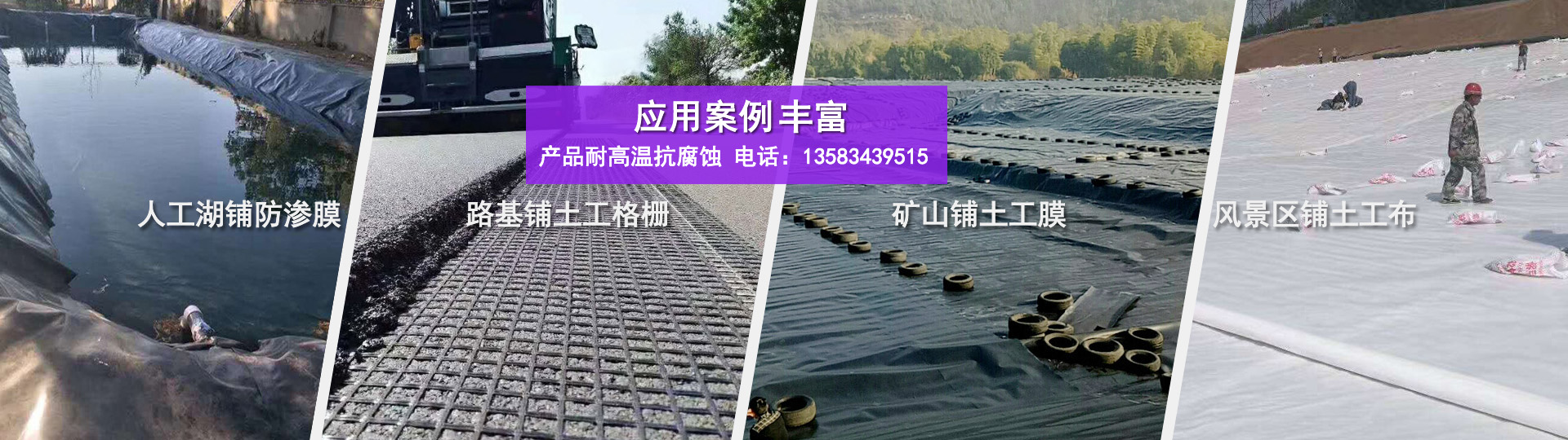 產(chǎn)品廣泛用于: 1.環(huán)保環(huán)衛(wèi)工程(如生活垃圾填埋場防滲、污水處理廠、有毒有害物質填埋場、危險品倉庫、廠房等) 2.水利土木工程(河、湖、水庫、堤壩、堵漏、加固、水渠防滲、護坡等) 3.市政工程(地鐵、建筑物的地下工程和屋頂蓄水池、屋頂花園防滲、污水管道內襯等) 4.園林綠化(人工湖、池塘、高爾夫球場的水塘底襯、護坡等) 5.石化(化工廠、煉油廠儲油池防滲防污、化學反應池、沉淀池的內襯、二次襯層、藥廠基建防滲與隔離) 6.礦業(yè)(洗選池、堆浸池、堆灰場、尾礦壩防滲防污等) 7.交通設施工(公路的基礎加固、涵洞的防滲) 8.農(nóng)業(yè)(水庫、飲用水池、蓄水池防滲、灌溉系統(tǒng)的防滲) 9.水產(chǎn)養(yǎng)殖業(yè)(魚塘、蝦池的內襯等)